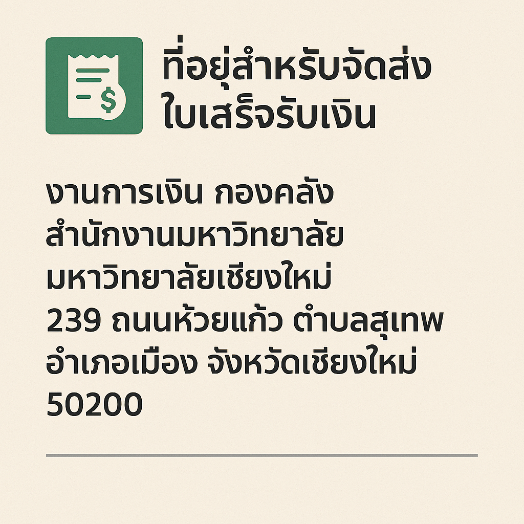 - ที่อยู่ในการจัดส่งใบเสร็จรับเงิน